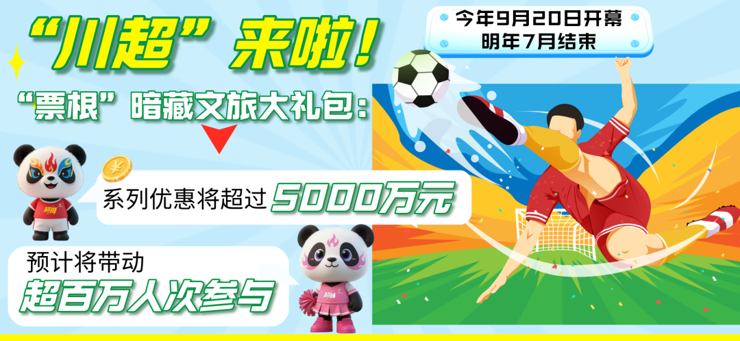 针对此次“川超”背后的“票根经济”,四川省文化和旅游厅相关负责人介绍称,“川超”作为四川自主培育的一项重大赛事,同时也是一次文体旅融合的生动探索。后续,四川将以“川超”各主场城市为核心,充分整合四川省旅游景区、文博场馆、精品演艺、酒店民宿、特色美食等资源,发放“赛事门票+景区门票+住宿优惠”系列“大礼包”。活动期间,球迷可享全省超500家A级旅游景区、博物馆、纪念馆等文旅场所门票减免,酒店、民宿最低七折等优惠。经初步测算,此轮文旅大礼包系列优惠金额将超过5000万元,预计将带动超百万人次参与,真正让“票根”变“入场券”,“观赛”变“深度游”。